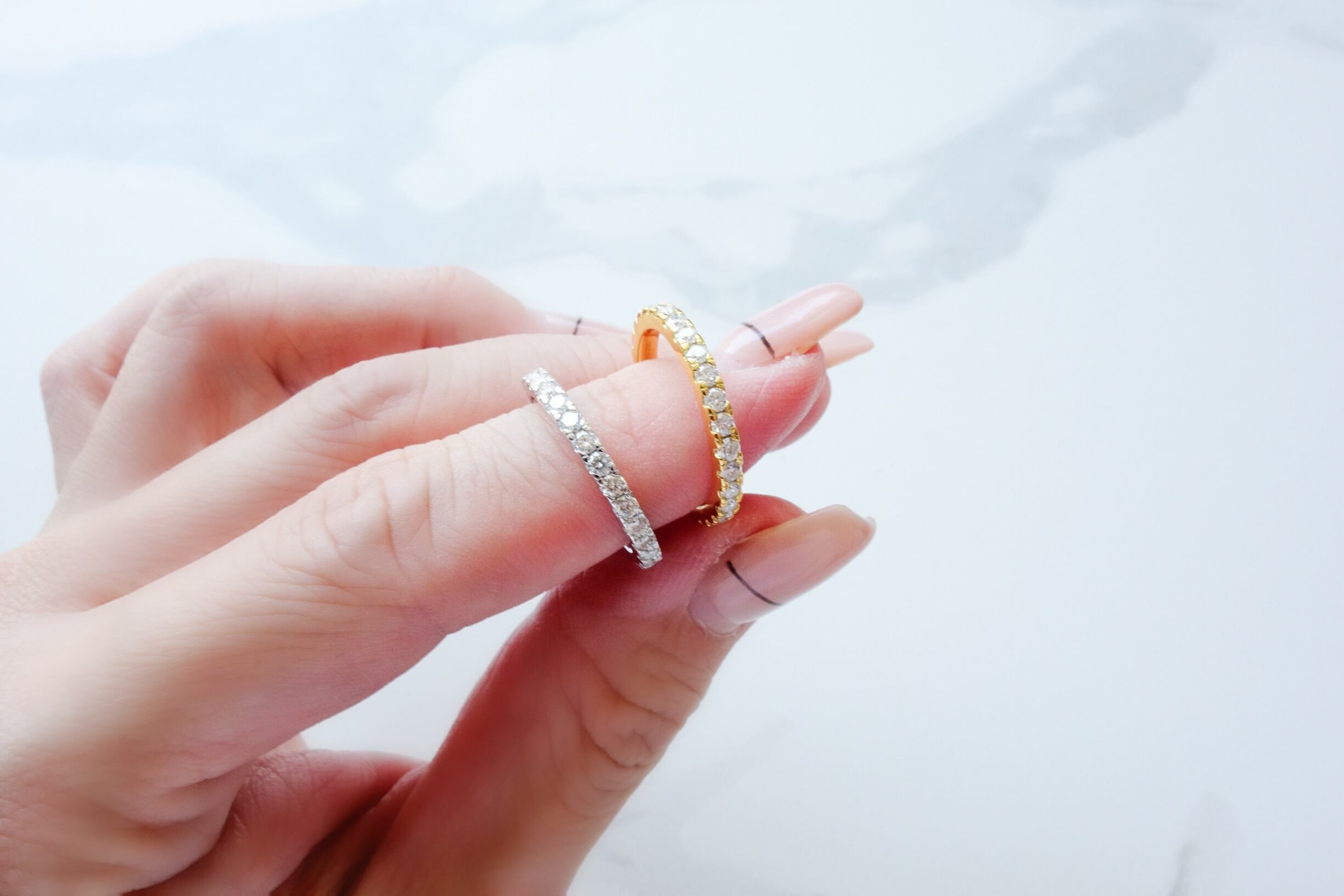 人工ダイヤモンドを使用したフルエタニティリング