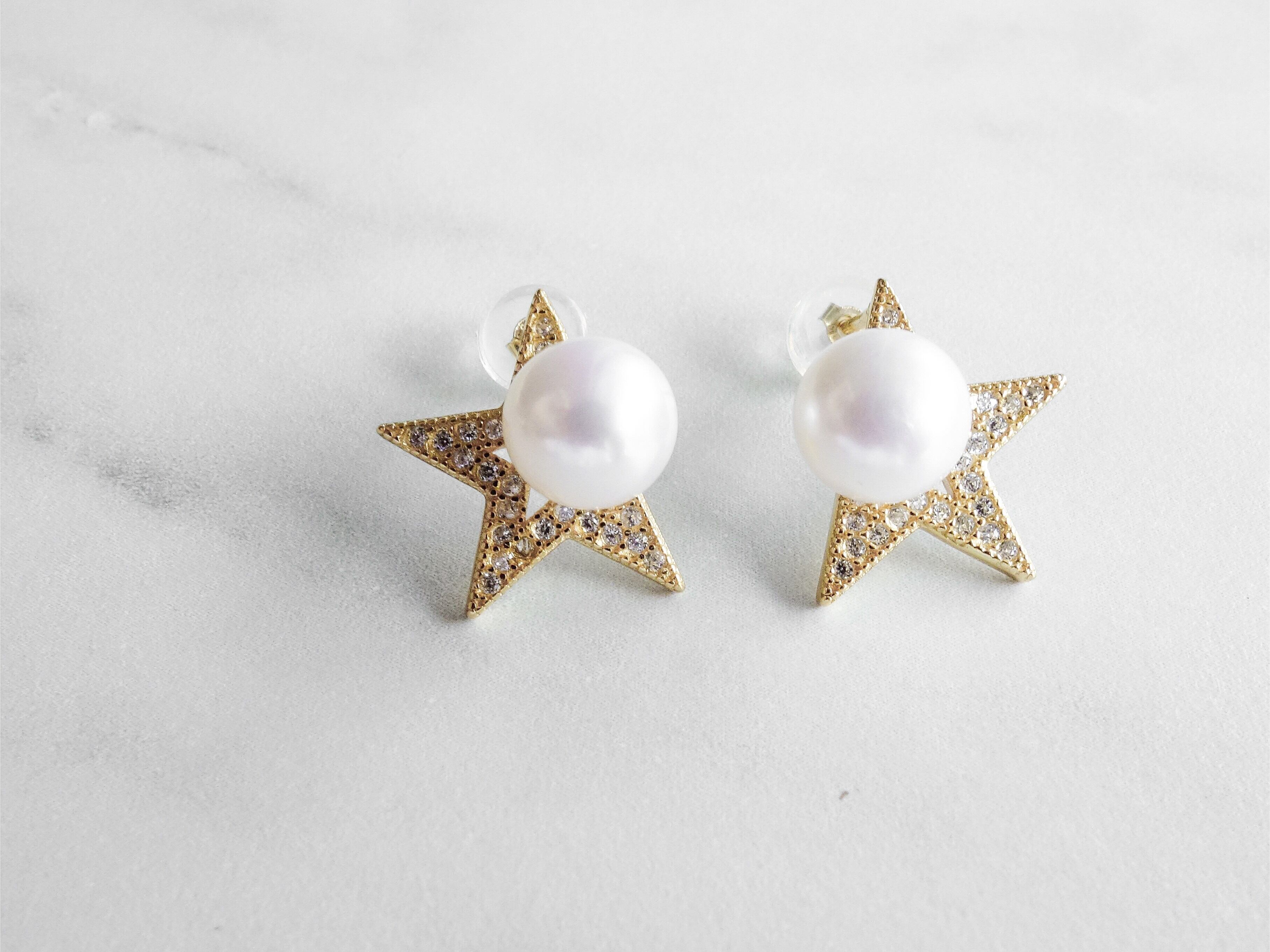 小さなジルコニアを埋め込んだキラキラの星と、艶が綺麗な淡水パール。